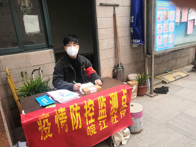 在抗击疫情的关键时期,他作为一名中共党员,积极贯彻习近平总书记对疫情防控的指示精神和上海海洋大学党委关于疫情防控的工作部署,积极投身到社区疫情防控中去,为国家为社会做出自己的一份贡献。相信在全国人民的共同努力下,疫情一定很快就会过去。