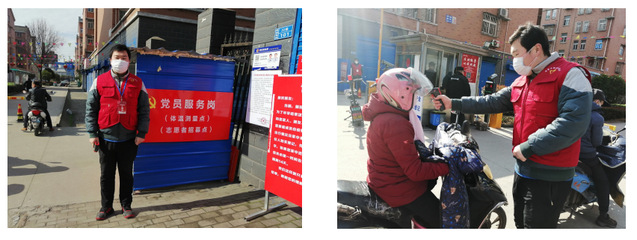 工程学院研究生第二党支部党员夏长春,假期在家第一时间向安徽省马鞍山市花山区金家庄街道党工委提出申请,做一名社区疫情防控的志愿者。街道党工委负责人非常高兴,并安排他负责社区的一个小区,在小区门口为本小区进出的居民进行体温测量,并对外来的人员前往疫情进行登记,叮嘱居民做好14天的居家隔离。