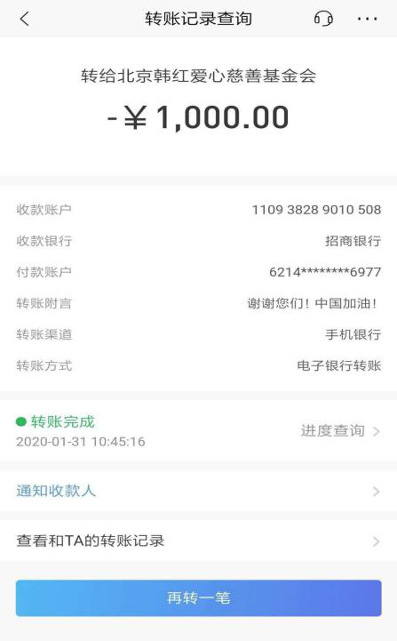 工程学院2017级机械设计制造及其自动化专业1班潘俊宇是一名中共预备党员,通过网络在韩红基金会上看到了其对于此次疫情做的物资采购调配规划时,心中想作为社会的新进力量,在全国人民共同抗难之际,必须站出来,贡献自己的一份绵薄之力,为此他捐赠1000元。他相信无数的个人善举,能够汇聚人民群众的磅礴之力。我们虽然隔离在家,但是无私的奉献让全国人民的爱心紧紧联系在一起。寒冬将逝,暖春将至。待他日,万物复苏,我们共庆胜利。樱花飘来的地方,叫武汉!
