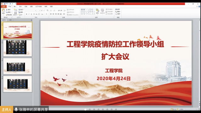 4月24日下午,工程学院以视频会议形式召开新冠肺炎疫情防控工作小组扩大会议。学院疫情防控领导小组成员、学院基层组织负责人、党支部书记参加会议。会议由学院党委书记张雅林主持。