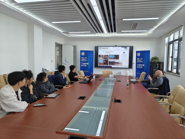 在互动交流环节,双方就海上风机的结构动力学、锚固系统设计、数字孪生技术及未来联合科研合作进行了深入讨论。曹宇副教授介绍了上海海洋大学在海洋工程与可再生能源领域的研究进展与国际合作成果,以及中英双方在海上风电领域的国际化项目申报及研究生联合培养方面提出了进一步合作设想。